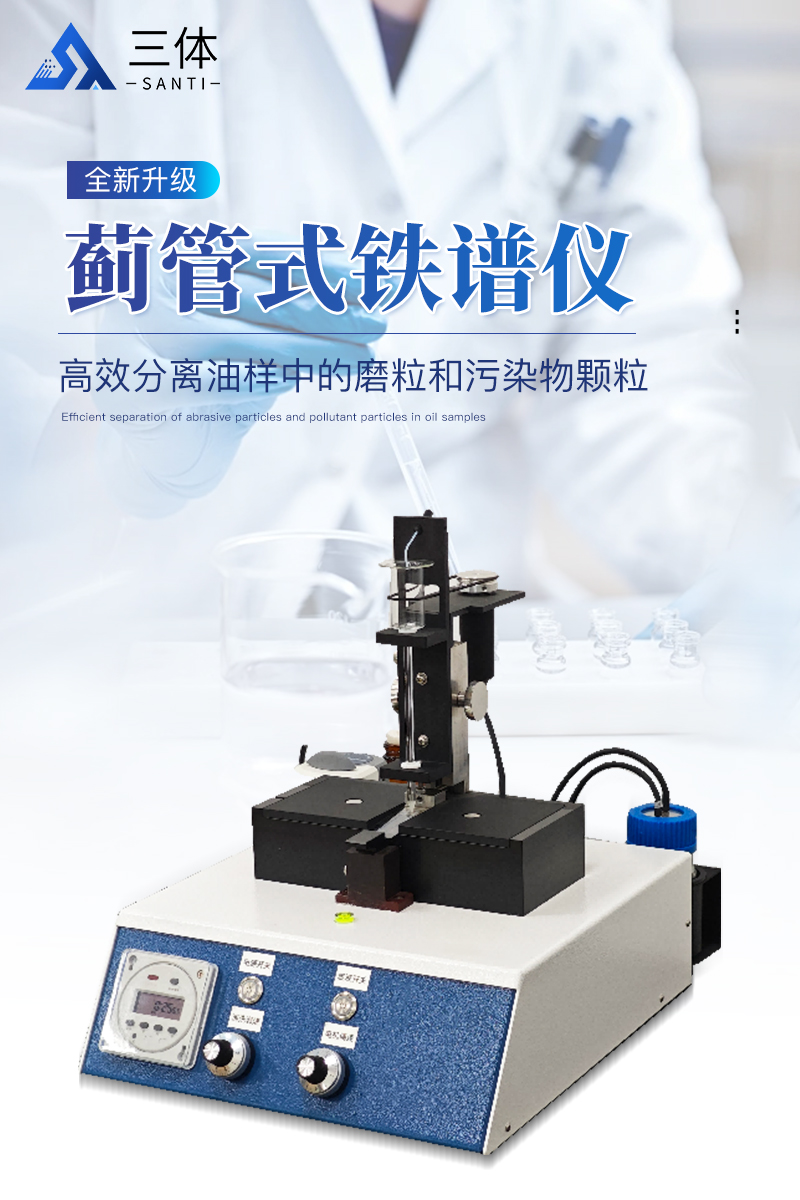 薊管式鐵譜儀是一套完整的鐵譜分析系統,用以分離和評定在用潤滑油、液壓油、冷卻液或燃油中的磨損顆粒和污染物顆粒,由薊管式鐵譜儀、顯微鏡、工業攝像頭、加熱盤(可選)和圖像采集軟件組成。為了確保譜片的制作質···
