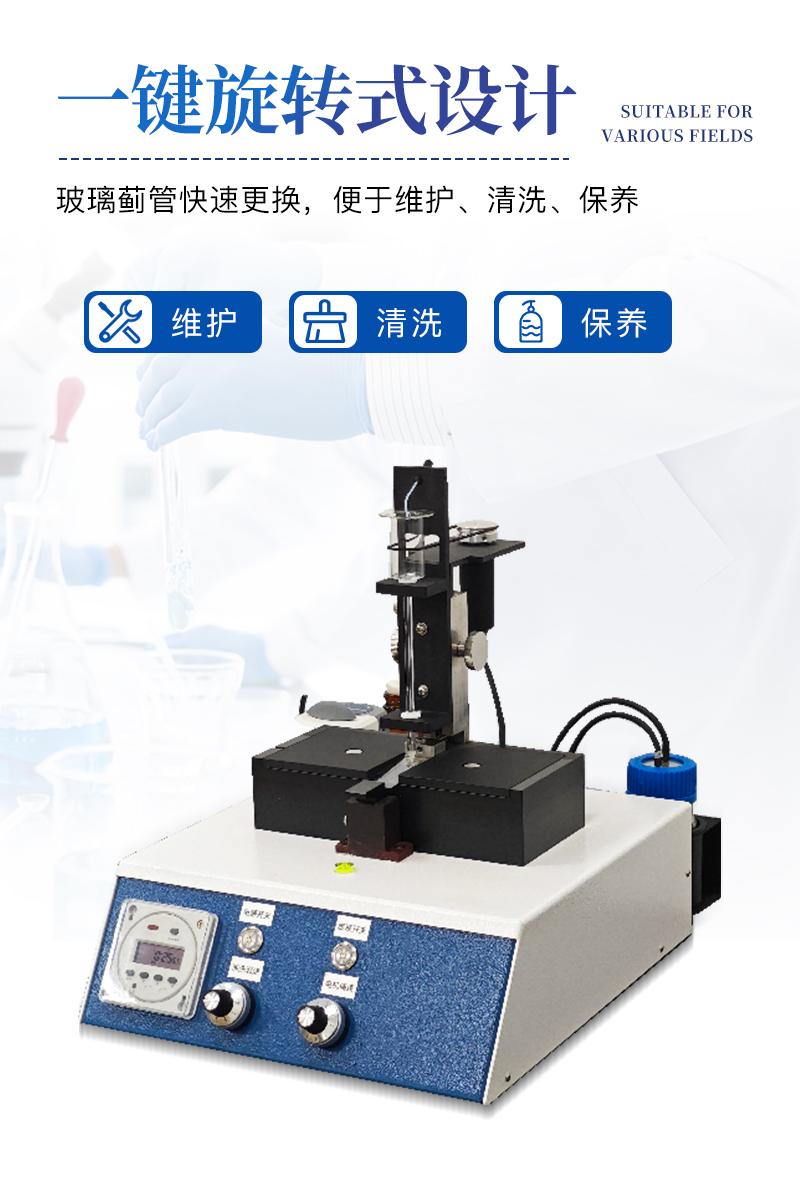 (7)一鍵旋轉式設計,玻璃薊管快速更換,便于維護、清洗、保養;