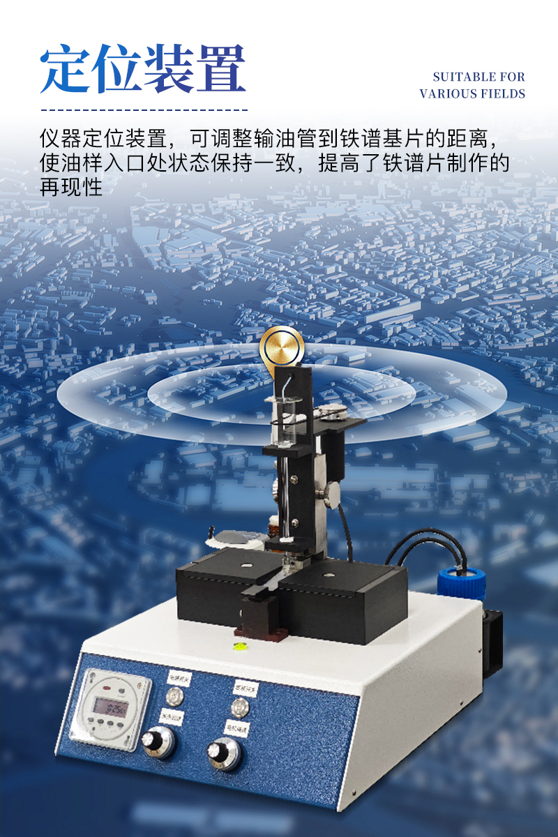 (11)儀器定位裝置,可調整輸油管到鐵譜基片的距離,使油樣入口處狀態保持一致,提高了鐵譜片制作的再現性;
