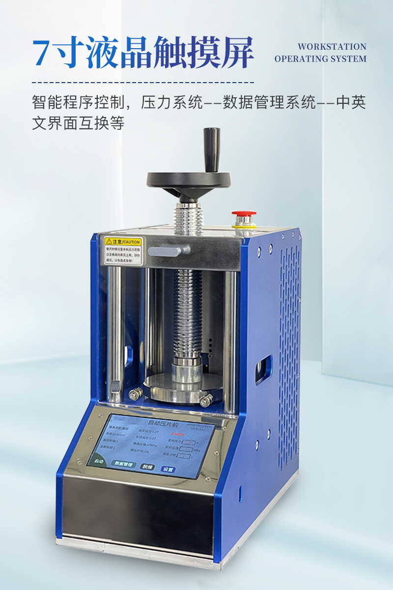 自動粉末壓片機該機配置7寸觸摸液晶屏,程序控制實現了精準控壓,滿足了客戶多段加壓的需求,另外還增設了很多安全配置,適合**實驗室使用。