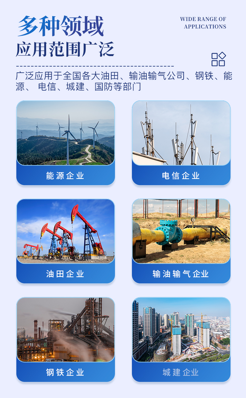該測試儀適用于材料土壤腐蝕試驗基礎數據的測試與積累、土壤腐蝕環境的勘測,地下金屬構件腐蝕狀況的調查,以及地下輸油輸氣管道及電纜腐蝕穿孔原因的診斷 等。除第二、三兩個項目以外,其余八個項目,也可以用于各野外臺站土壤理化性質的原位測定。該儀器已廣泛應用于全國各大油田、輸油輸氣公司、鋼鐵、能源、 電信、城建、國防等部門。